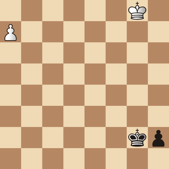 Readers score no points for playing: 1.a8=H+!, the only winning move. Those who wanted to Queen the pawn are encouraged to consider checkers as an alternate interest.