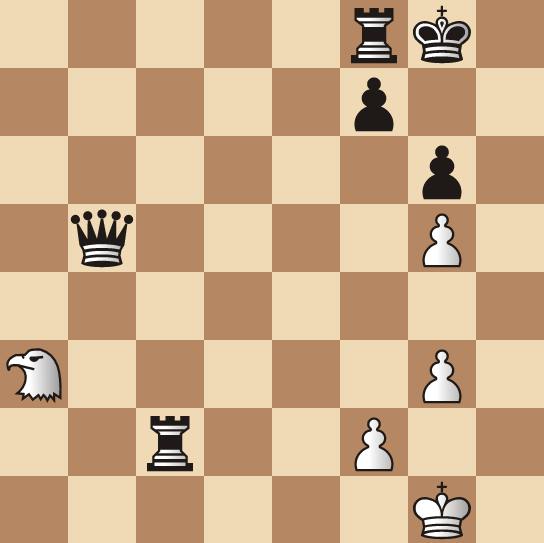 Let us investigate how the Hawk fares dueling a Rook. If from the diagrammed position we replace Black's Queen with a Black Rook, the win is the same.